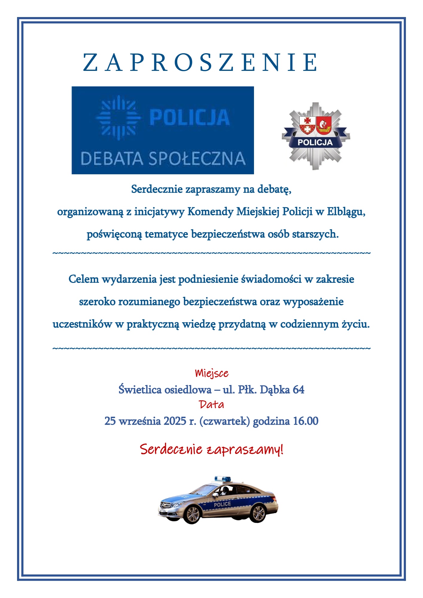Elbląska Spółdzielnia Mieszkaniowa „Sielanka” składa serdeczne podziękowania wszystkim uczestnikom debaty o bezpieczeństwie, która odbyła się w naszej siedzibie dnia 25 września 2025 roku.